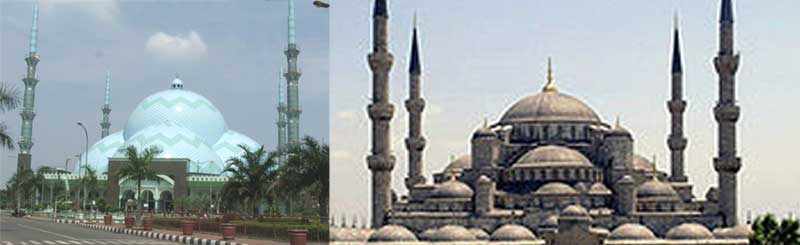 Masjid Raya Al-Azhom dengan Mesjid Biru Turki